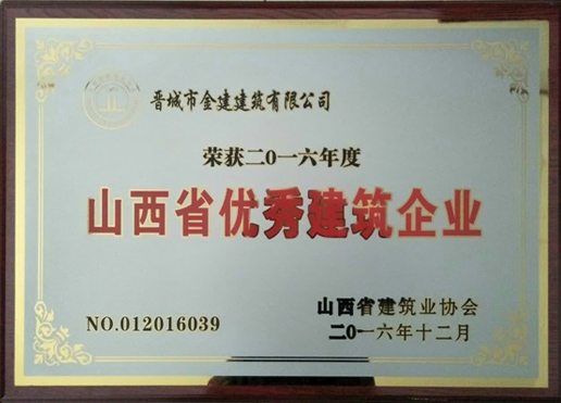 近日從省建筑業(yè)協(xié)會(huì)傳來喜訊,晉城市金建建筑有限公司榮獲2016年度山西省建筑企業(yè)。
